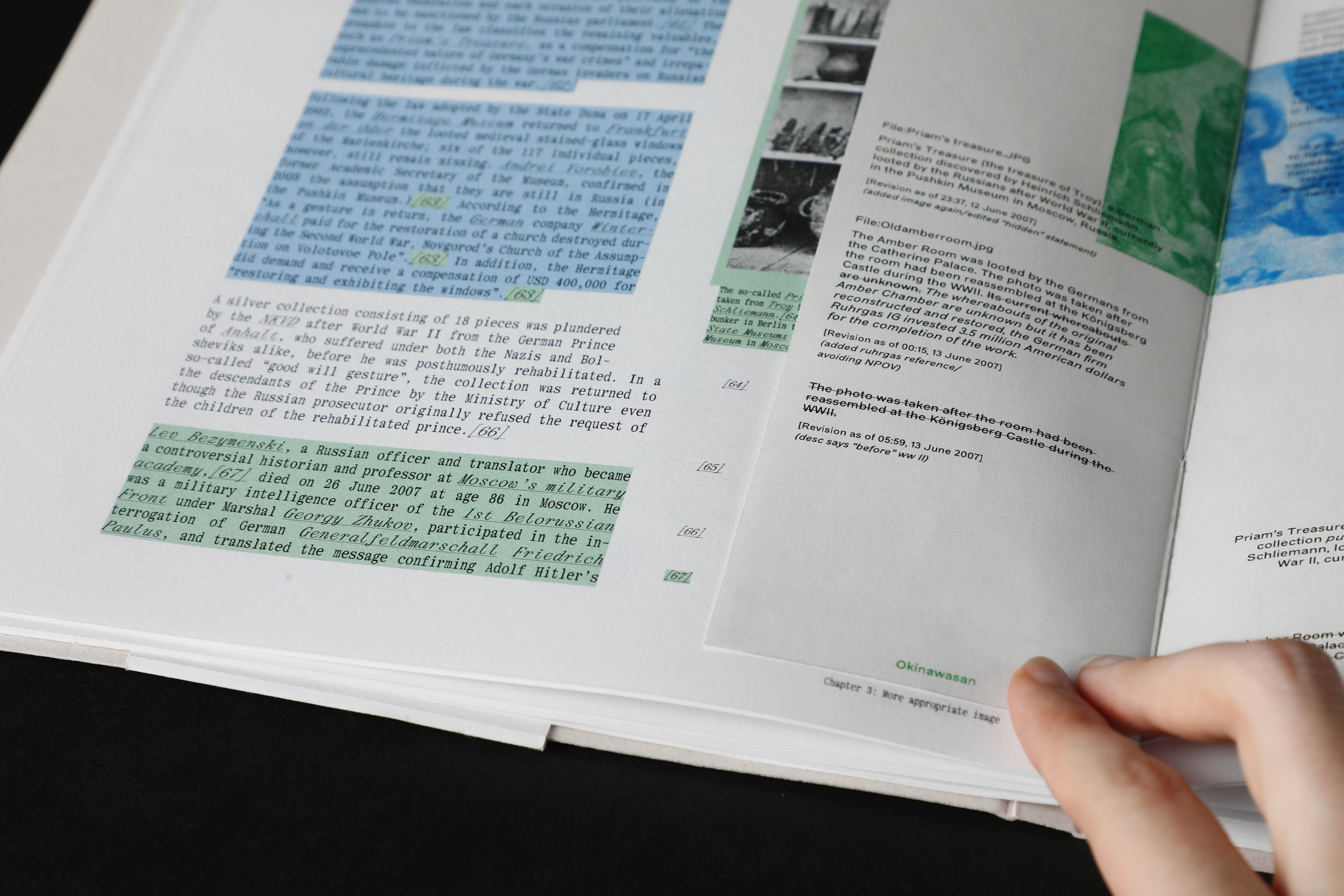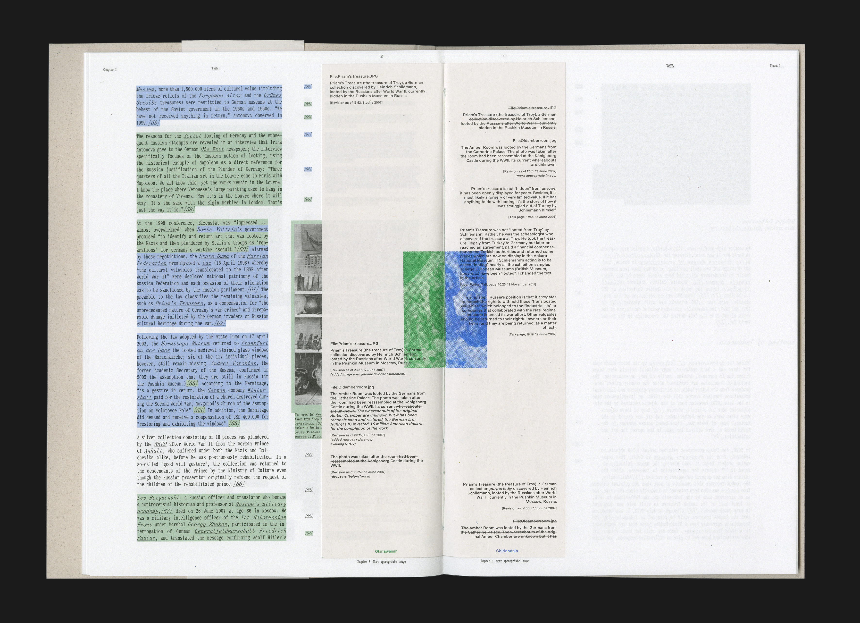 explores a contentious world of looted art by following an indirect discussion of two Wikipedia editors with opposite views on the subject. Their joint efforts in creating the articles are arranged as a continuous storyline revealing how people's backgrounds affect a seemingly impartial narrative presented to the mass audience.